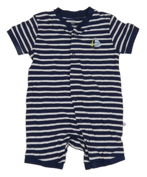 Tmavomodro-bílý pruhovaný kraťasový overal s plachetnicí Liegelind