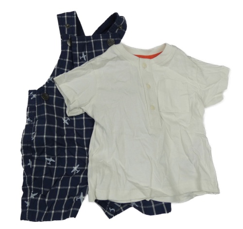 • 2set - Tmavomodro-bílé kostkované podšité laclové kraťasy s letadly + smetanové tričko s knoflíky a kapsou M&S