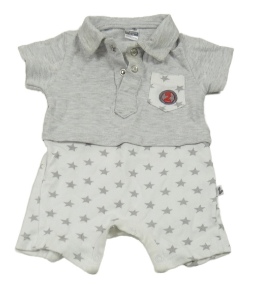 • Světlešedo-bílý kraťasový overal s hvězdičkami a kapsou s číslem a límečkem