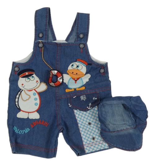 2 set - modré laclové riflové kraťasy s obrázky + kšiltovka
