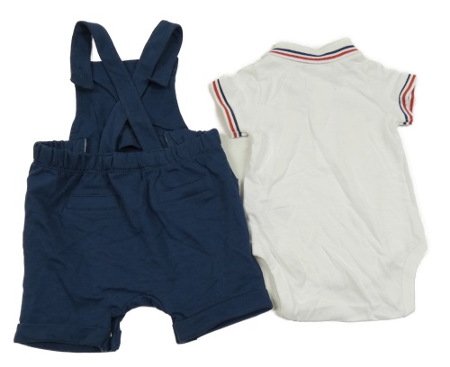 Nové - 2 set - bílé body s límečkem + tmavomodré teplákové laclové kraťasy Next