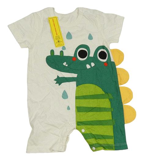 Nové - Smetanovo-zelený bavlněný kraťasový overal s krokodýlem