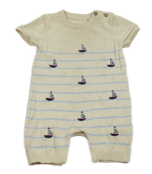Světlebéžový pruhovaný úpletový kraťasový overal s plachetnicemi Tu