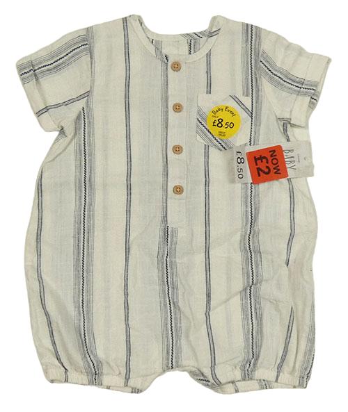 Nové - Bílo-tmavomodrý pruhovaný kraťasový overal s kapsou George