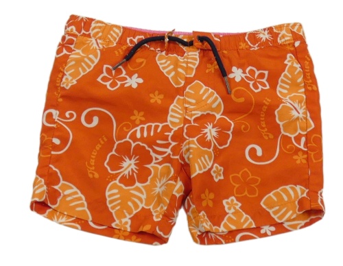 Červeno-oranžové plážové kraťasy s listy Vertbaudet