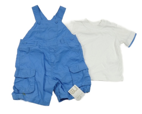 • Nové - 2Set - Modré cargo plátěné laclové kraťasy + bílo/modré tričko Mothercare