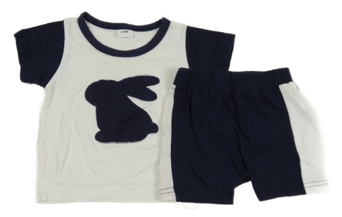 2set - Bílo-tmavomodré tričko s králíkem + kraťasy