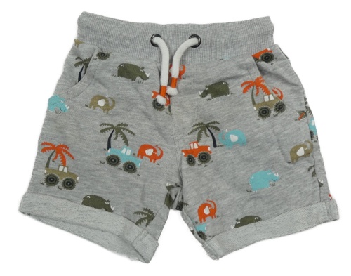 Šedé teplákové kraťasy s auty a zvířátky Topomini