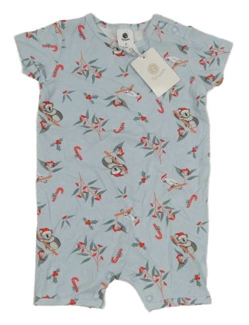 Nové - Světlemodrý bavlněný kraťasový overal s koalami a papoušky