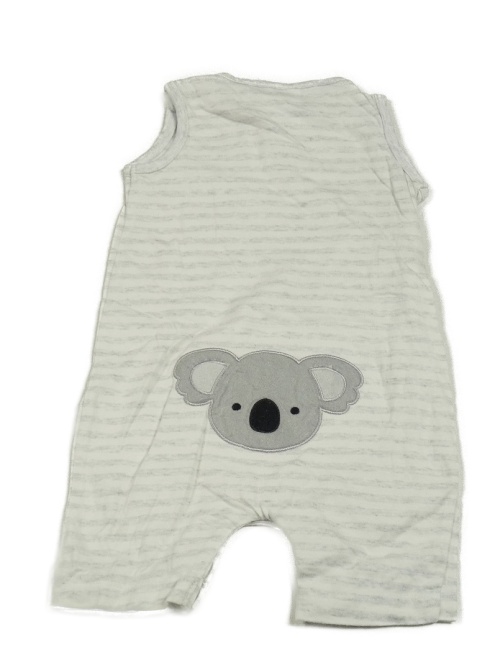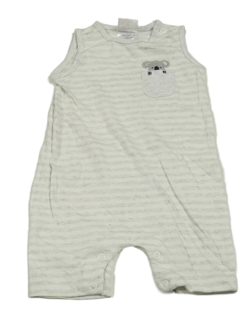 Bílo-šedý pruhovaný melírovaný kraťasový overal s koalou a kapsou Sprout