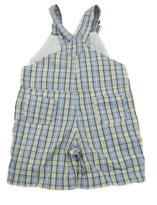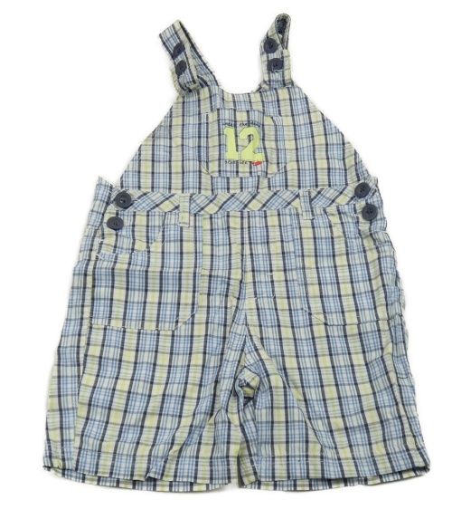 Bílo-modro-limetkové kostkované plátěné laclové kraťasy s číslem Berti