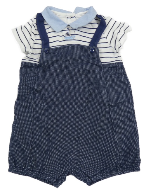 Tmavomodro-bílý pruhovaný kraťasový overal s lodičkou Mayoral