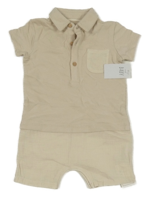 Nové - Béžový bavlněno/mušelínový kraťasový polo overal M&S
