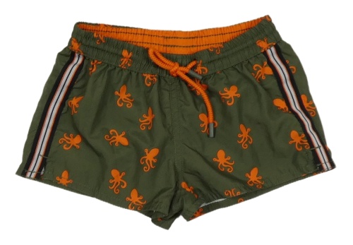 Khaki-oranžové plážové kraťasy s chobotnicemi