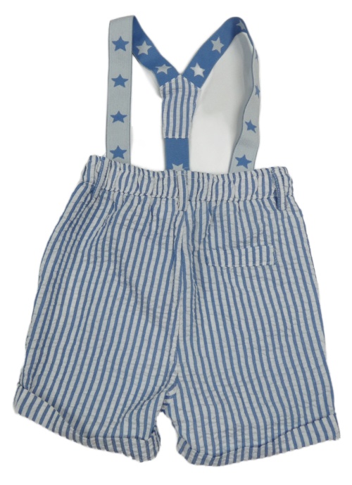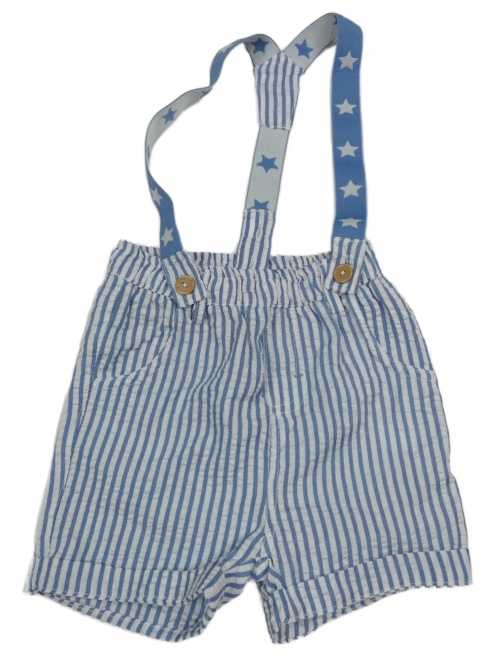 Modro-bílé pruhované mušelínové kraťasy s kšandami