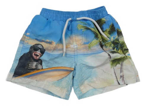 Modro-světlepudrové plážové kraťasy s opičkou a palmami NUTMEG