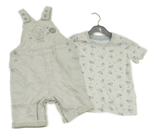 • Nové - 2Set - Světlešedé melírované cargo teplákové laclové kraťasy s Dumbem + bílo/světlešedé tričko George
