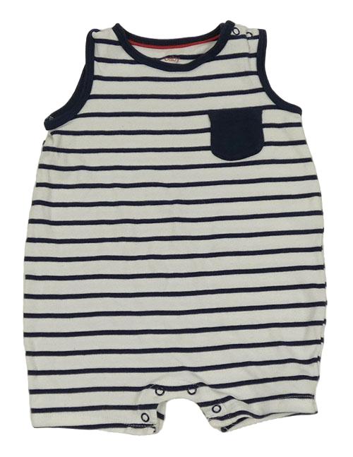 Bílo-tmavomodrý pruhovaný bavlněný kraťasový overal s kapsou C&A