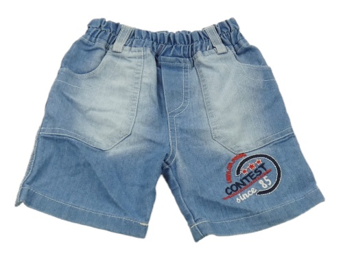Světlemodré teplákové riflové kraťasy s nápisy a číslem