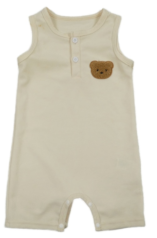 Vanilkový žebrovaný kraťasový overal s medvídkem
