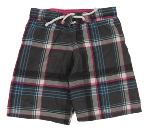 Tmavošedo-růžovo-modré kostkované plážové kraťasy