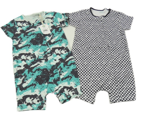 Nové - 2x - Kraťasový overal - Army, černo/bílý kostkovaný se smajlíky Next