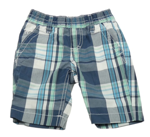 Tmavomodro-bílo-zelené kostkované plátěné kraťasy C&A