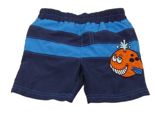 Tmavomodro-modré plážové kraťasy s velrybou Topolino