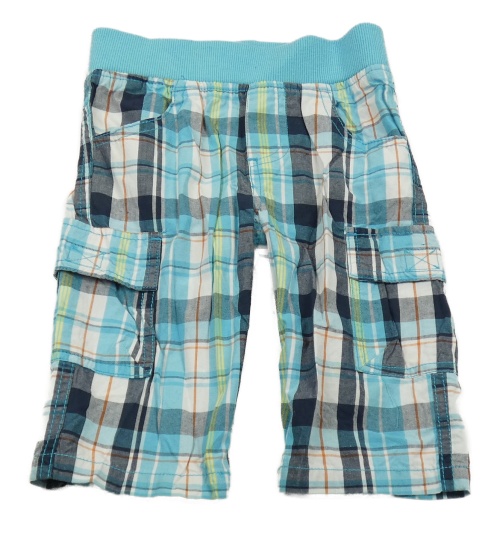 • Azurovo-bílo-tmavomodré kostkované plátěné cargo kraťasy s úpletovým pasem Topolino