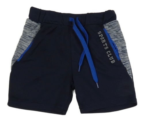 Tmavomodro-melírované sportovní kraťasy s nápisem Topolino