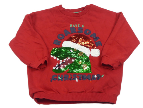 Červená mikina s dinosaurem z překlápěcích flitrů F&F
