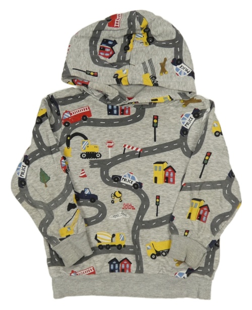 Šedá melírovaná mikina se silnicí s dopravními prostředky a kapucí H&M