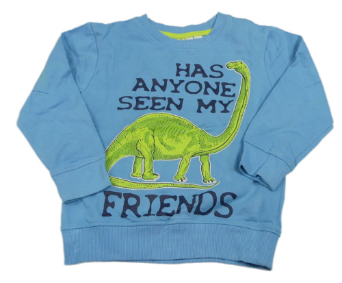 Modrá mikina s nápisem a dinem