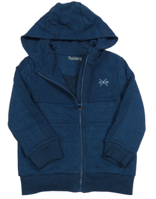 Tmavomodrá žebrovaná propínací mikina s výšivkou a kapucí Nutmeg