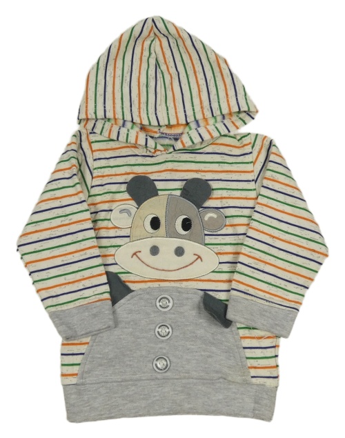 Smetanovo-barevná pruhovaná mikina se žirafou a kapucí