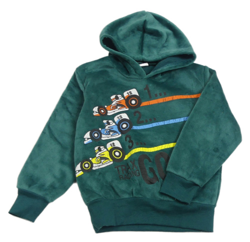 Zelená sametová mikina s formulemi a kapucí