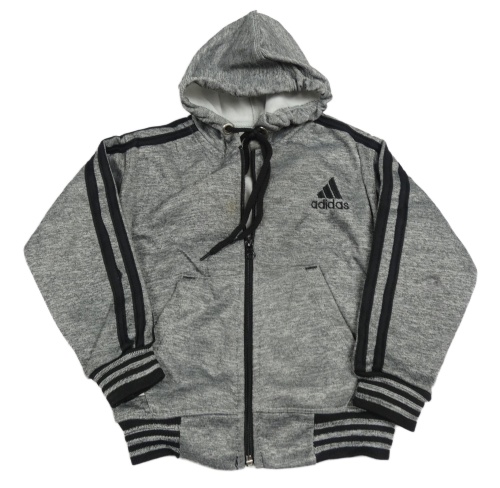 Šedá melírovaná propínací mikina s pruhy a kapucí Adidas