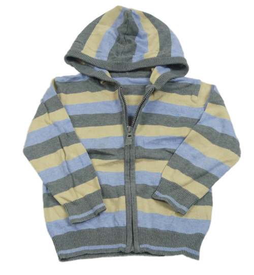 Šedo-modro-béžový pruhovaný propínací svetr s kapucí St. Bernard