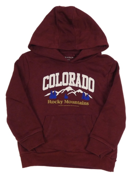 Tmavovínová mikina s horami a nápisy a kapsou a kapucí PRIMARK