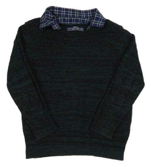 Tmavozeleno-černý melírovaný vzorovaný svetr se všitou košilí Matalan