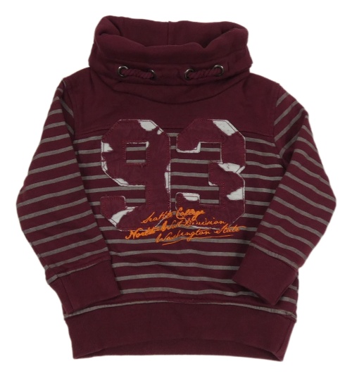 Vínovo-šedá pruhovaná mikina s číslem a komínovým límcem