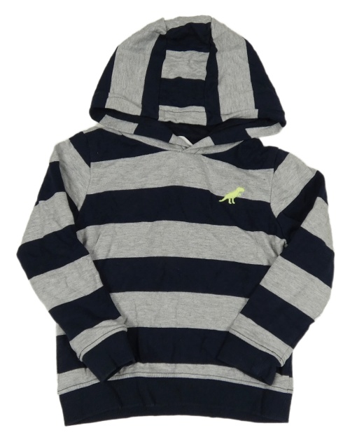 Tmavomodro-šedá pruhovaná mikina s dinosaurem a kapucí M&S