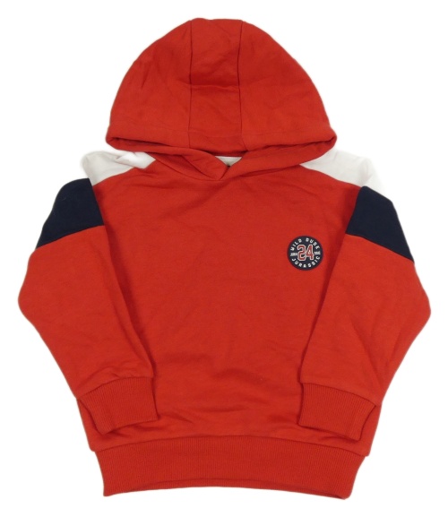 Červeno-bílo-tmavomodrá mikina s nášivkou a kapucí C&A