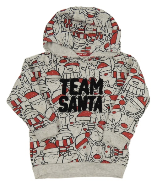 Šedo-červená vzorovaná mikina s nápisem a kapucí F&F