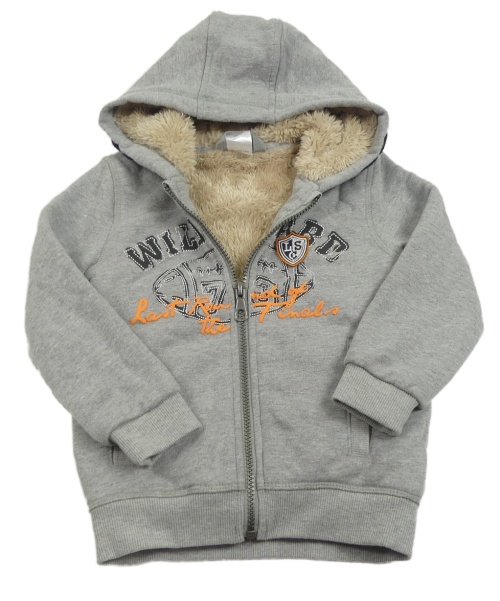 Šedá melírovaná zateplená propínací mikina s nápisem a kapucí Pocopiano