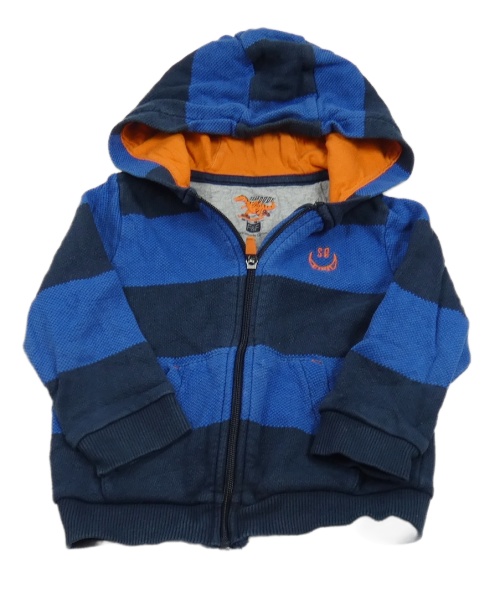 Tmavomodro-modrá pruhovaná propínací mikina se smajlíkem a kapucí F&F