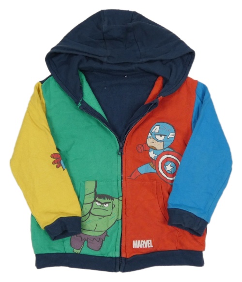 Modro-červeno-zeleno-žlutá propínací mikina se superhrdiny a kapucí George