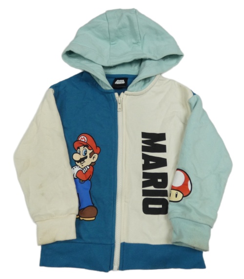 Smetanovo-petrolejovo-světlezelená propínací mikina s Máriem a kapucí M&S