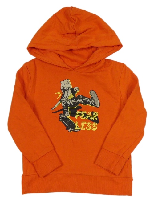Oranžová mikina s dinosaurem na skatu a kapucí Jeff&Co