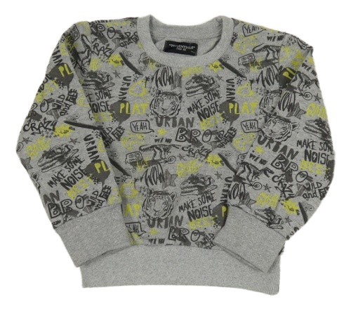 Šedá vzorovaná mikina se zvířaty a nápisy